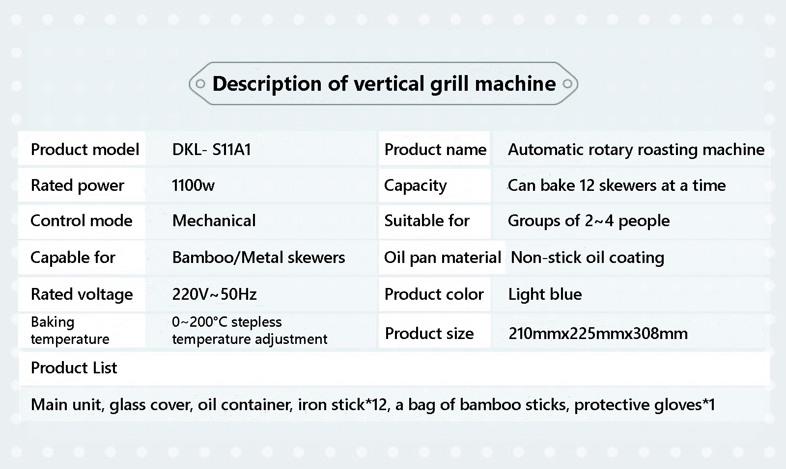 - Suitable for rotating oven whose liner longer than 23cm and higher than 14cm.