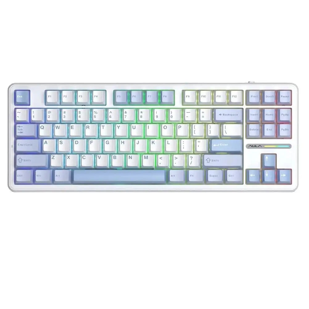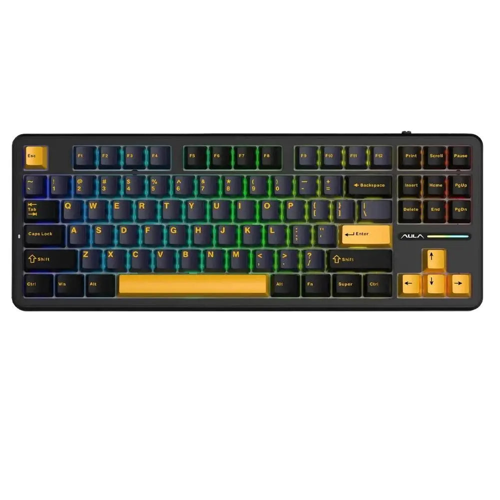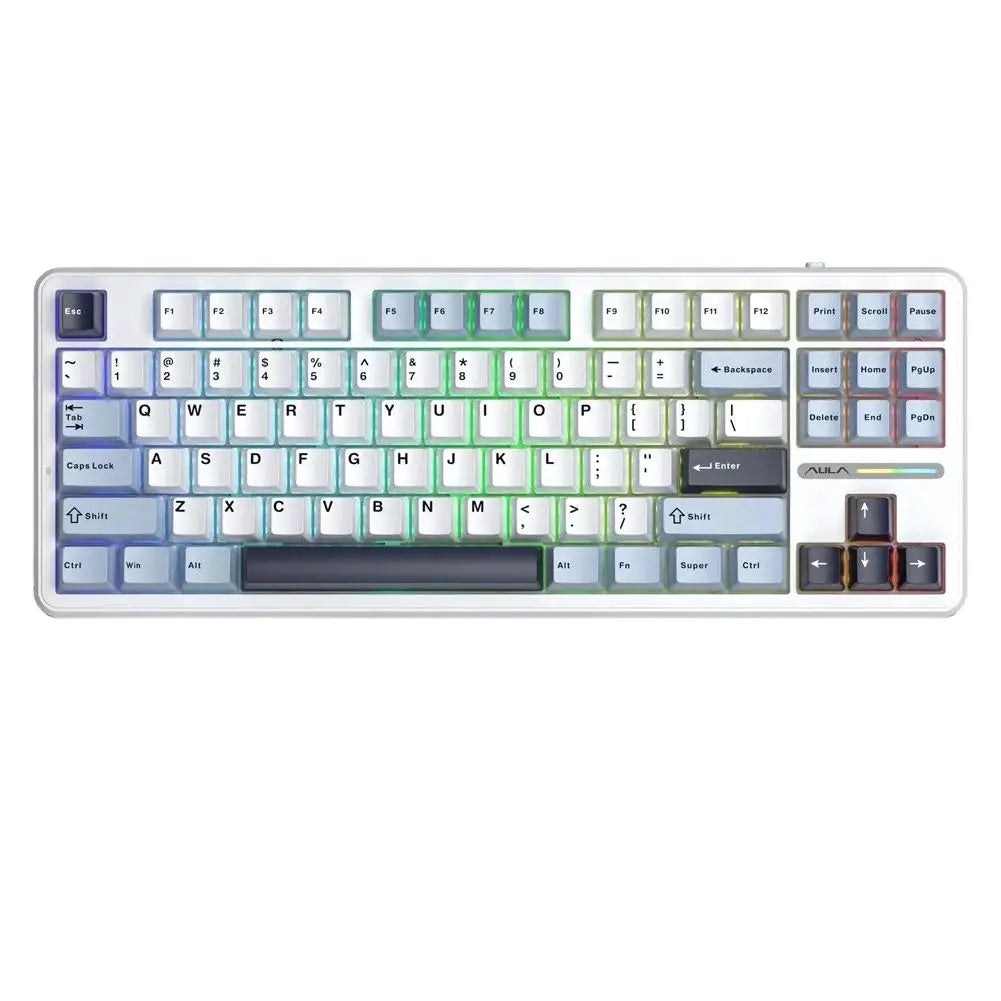AULA F87 Pro has multiple RGB backlit modes that you can switch with simple shortcuts,you can choose between dynamic RGB lighting with 16.8 million colors or a sleek monochrome backlight,diy RGB effects with the AULA custom software. The F87 Pro also features side strip lights and musical rhythmic effects, all customizable for a personalized and visually stunning experience.With the software, all kinds of keyboard key functions could be set, macro recording,save multiple macro settings etc.