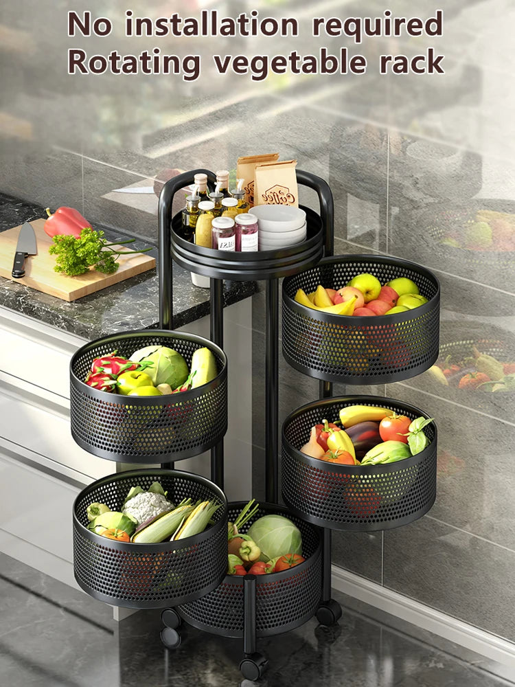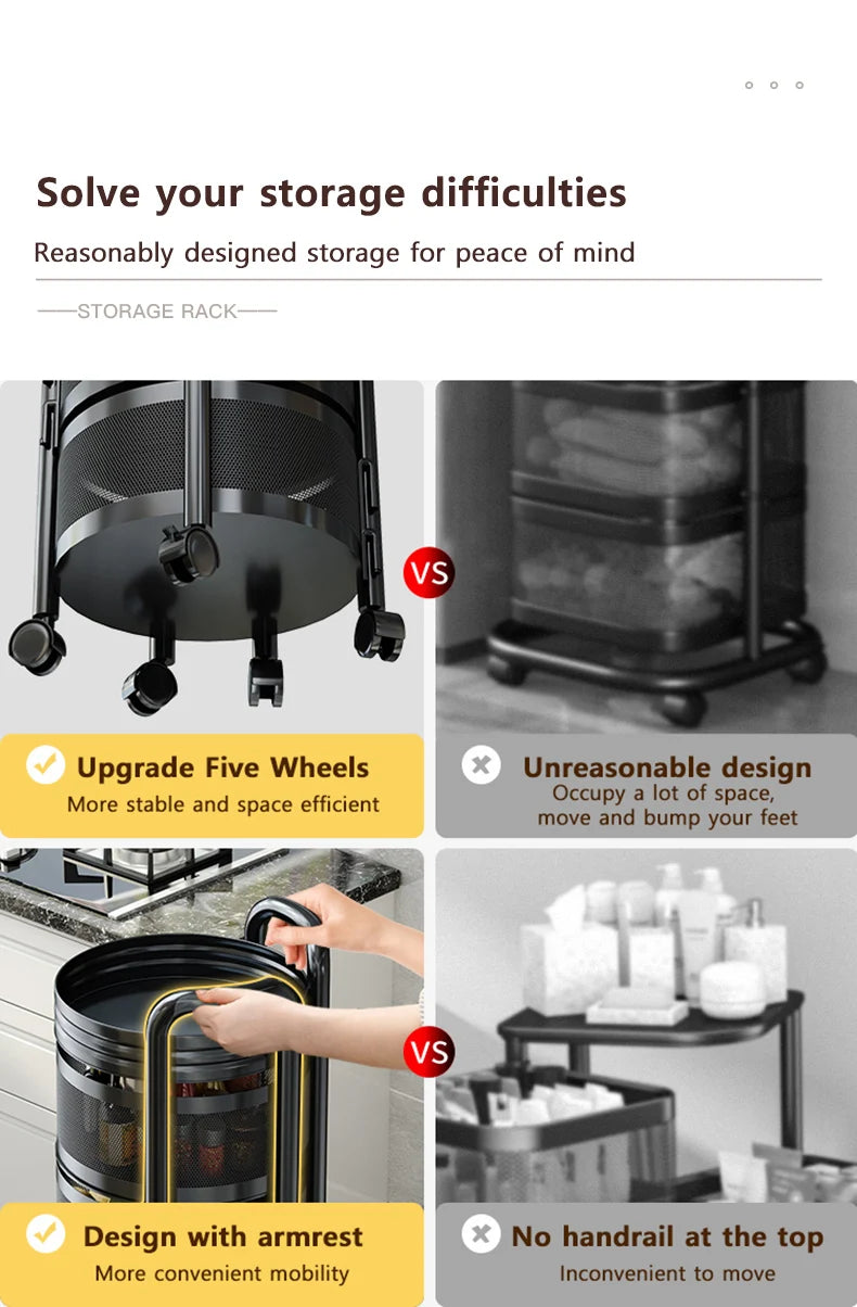 Detachable Rotating Storage Rack Kitchen Floor Multi-layer Shelf Multi-functional Living Room Snack Storage Rack Trolley Rack