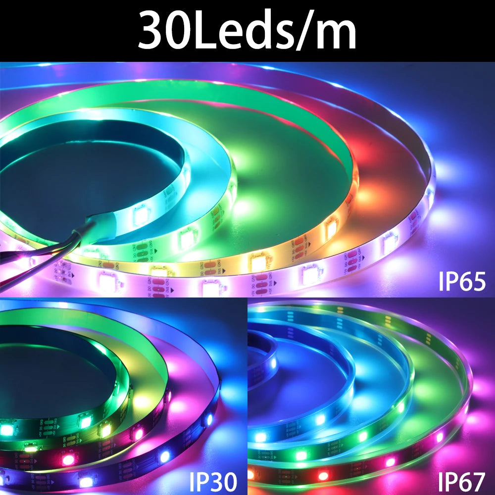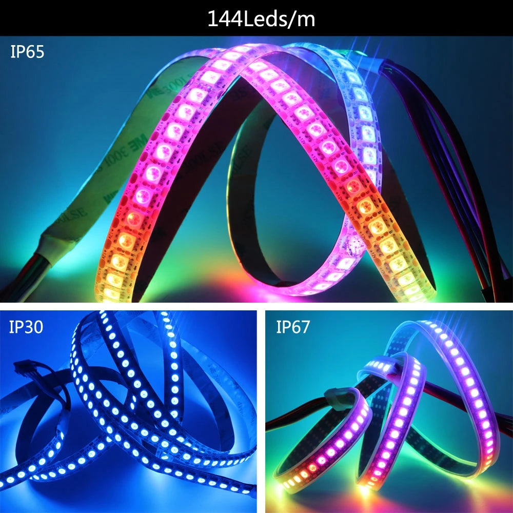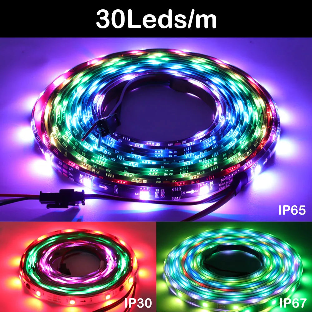 5050 RGBIC Smart LED Strip Individually Addressable IC 30/60/144 Pixels/LEDs per Meter DC5V/12V WS2812B WS2811 WS2813 WS2815