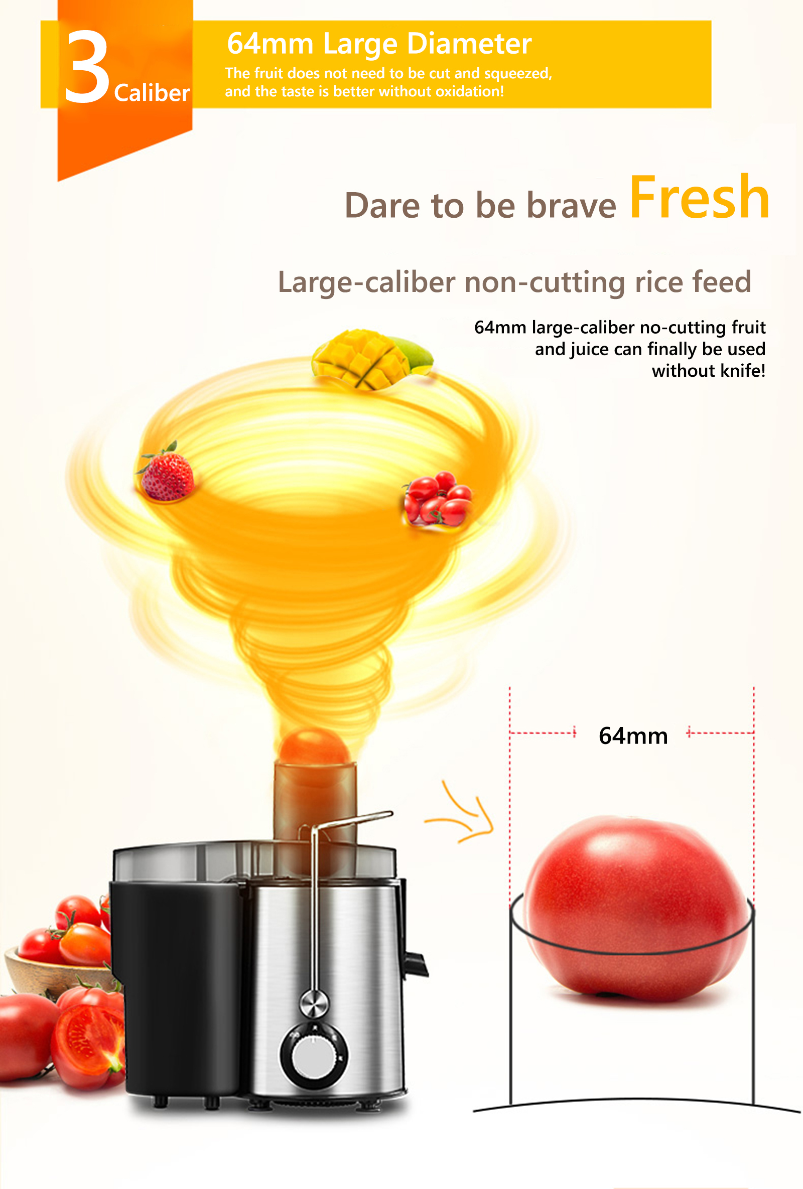 - Note: The fruit from which you want to squeeze juice should be cut into small pieces for it to run smoothly