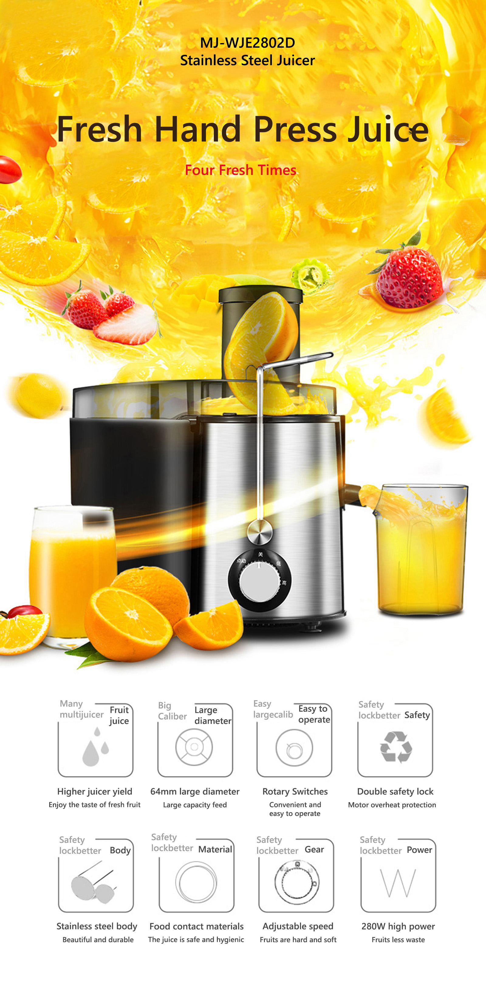 Fresh Juice Fruit Vegetable Extractor DIY Juice MJ-WJE2802D