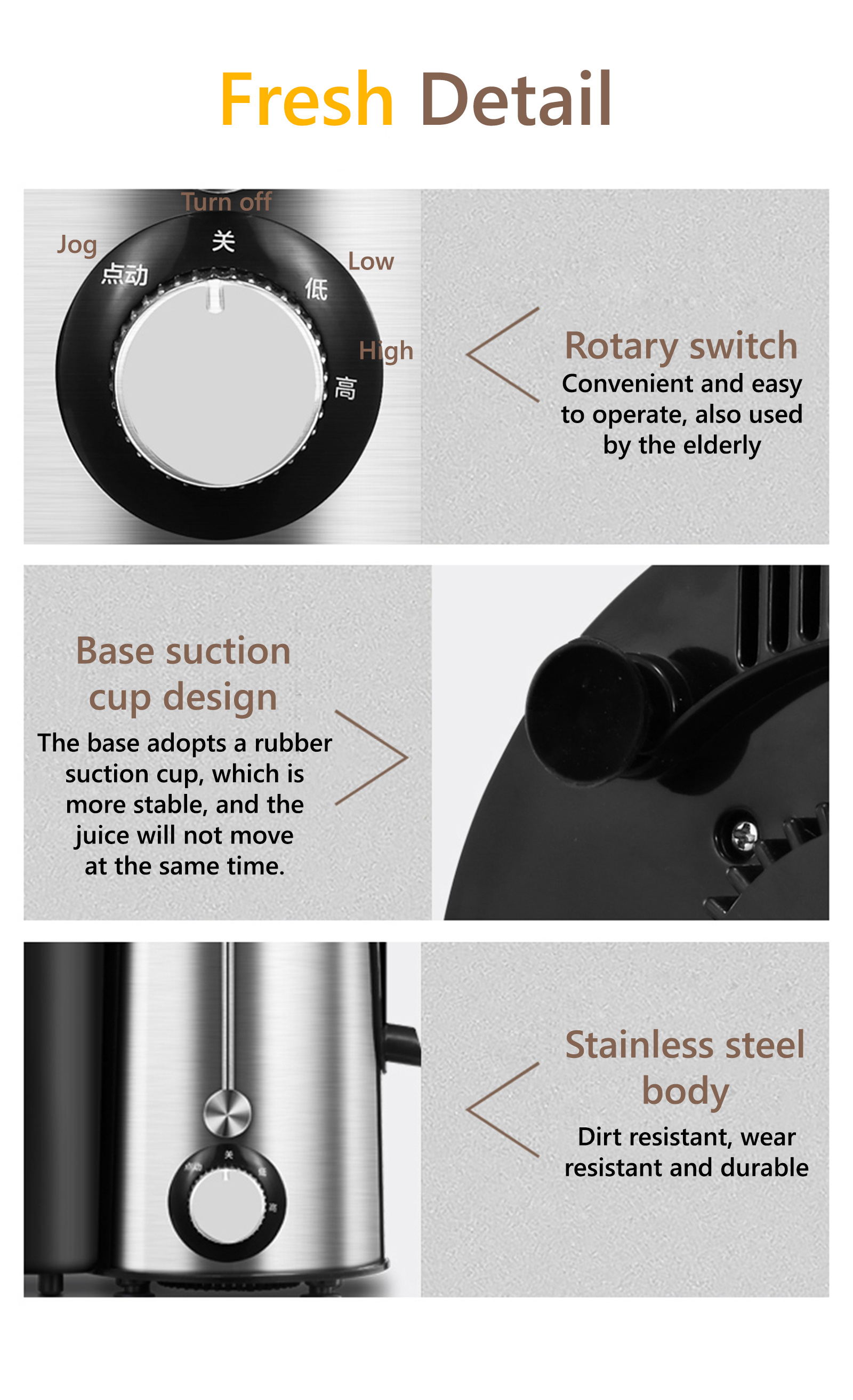 - 6 Stainless steel sharp vanes, it does better in grinding.