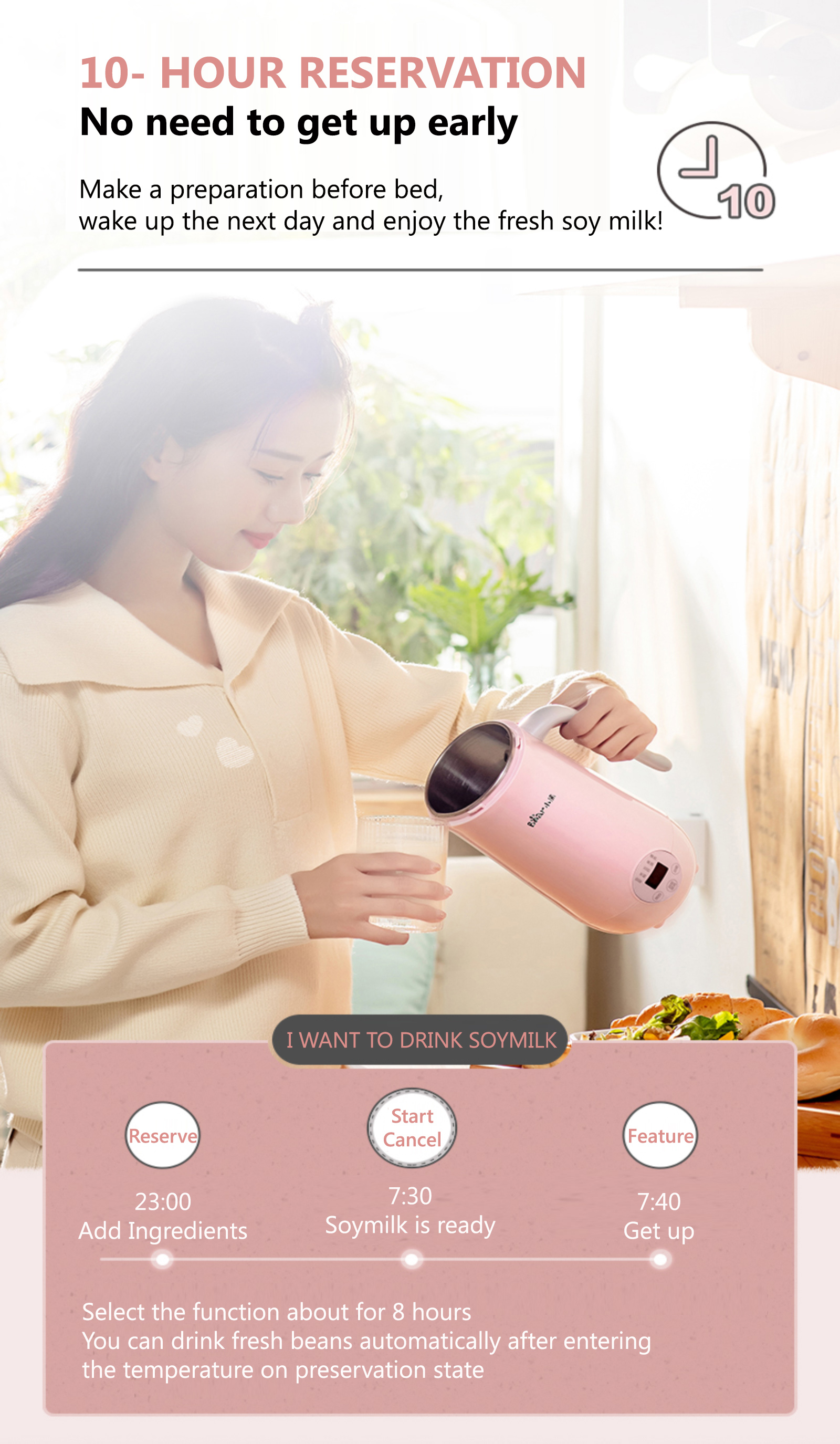 - Can be used to preset the finishing cooking time in advance.
