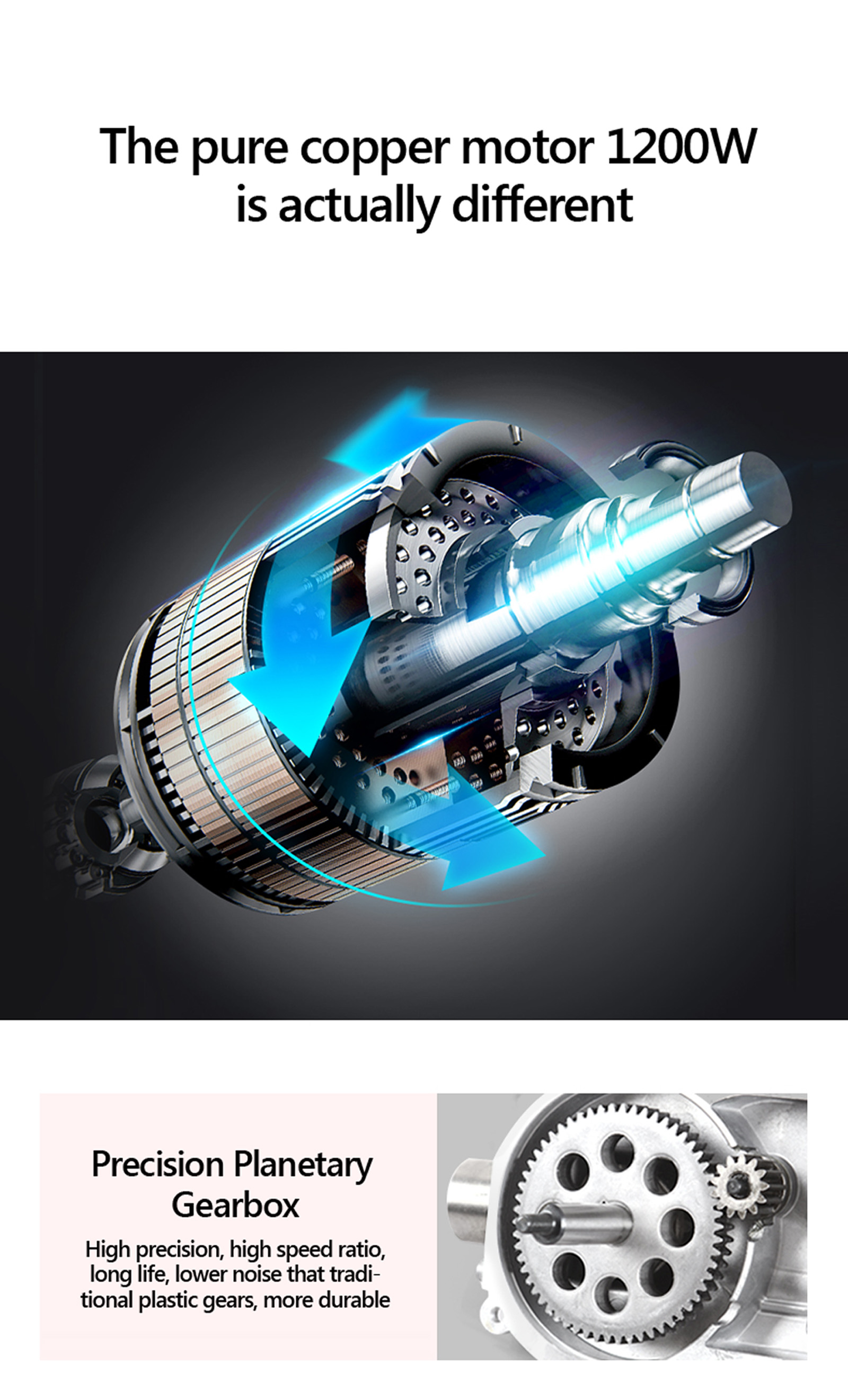 - Max. 900W 32000RPM self-compensation motor for uninterrupted operations.