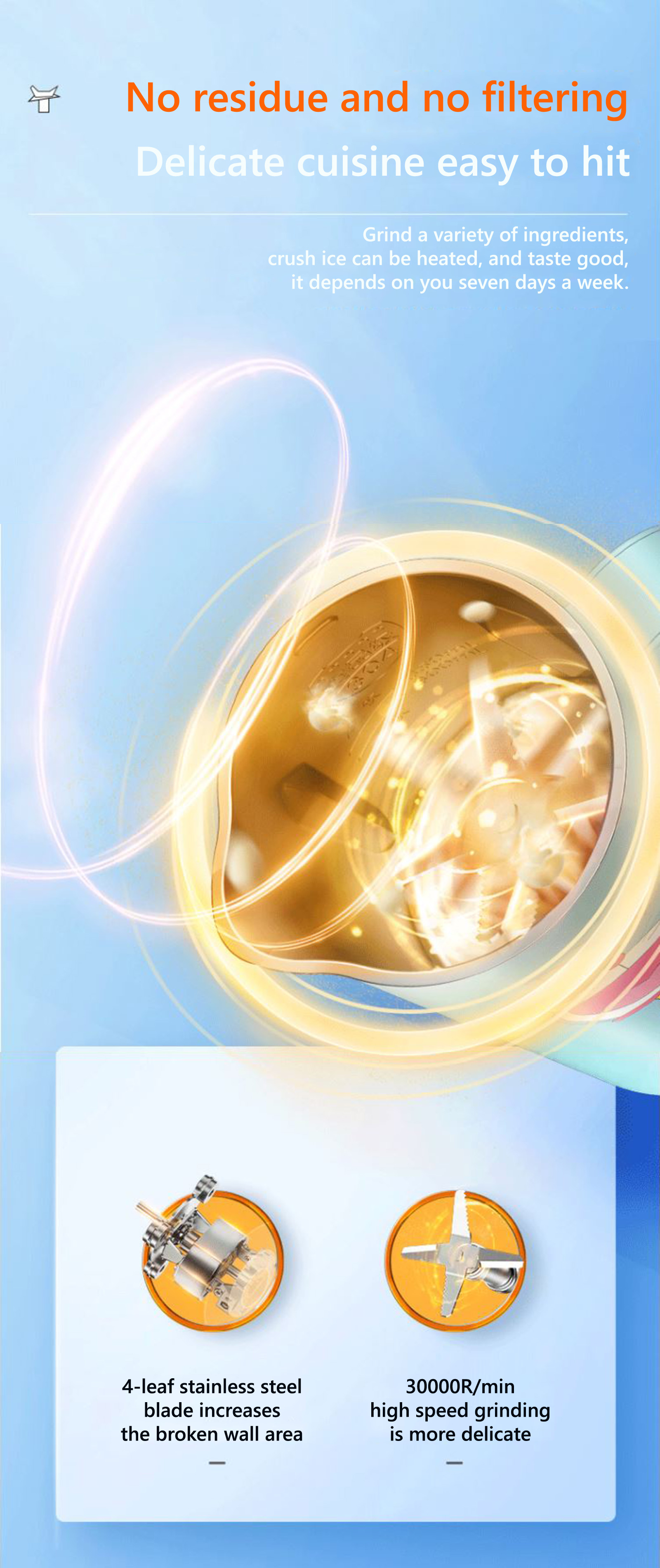 - Hardened stainless steel wave action blades allows for greater product versatility