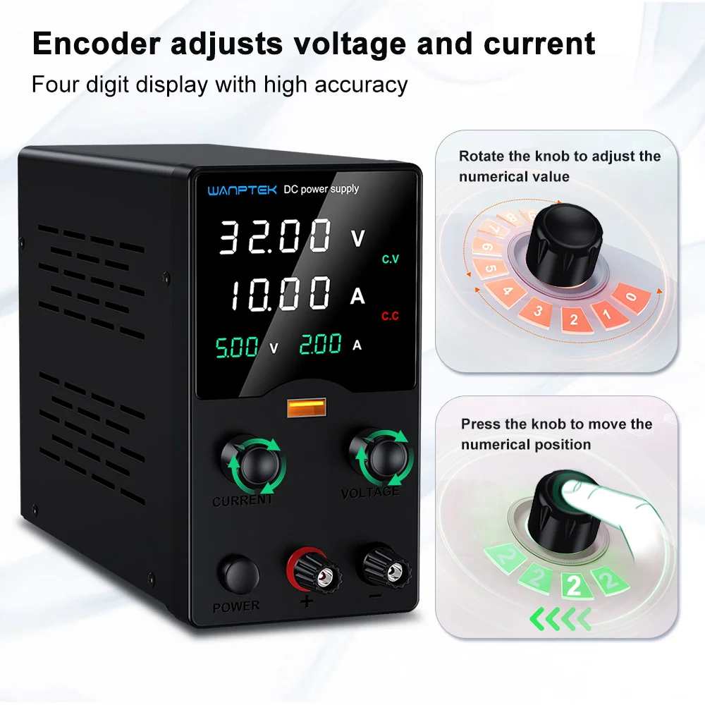 Wanptek DC Lab Power Supply 32V 62V 120V 160V Adjustable Switching Power Supply with 5V 2A USB Charging Display Regulator