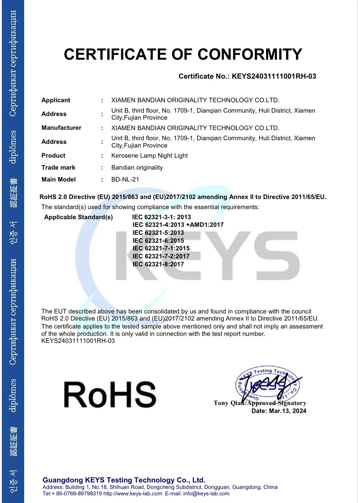 Certification: CCC, CE, FCC, ROHS